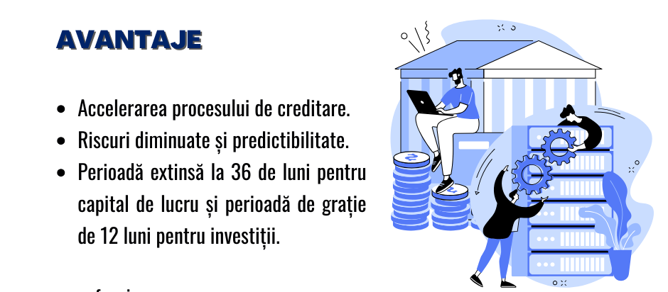 Un alt avantaj pentru IMM-uri îl reprezintă, perioada de garantare extinsă la 36 de luni, pentru capitalul de lucru, oferind stabilitate și predictibilitate în gestionarea fluxurilor financiare, iar în cazul creditelor de investiții, garanția este acordată pe durata stabilită de finanțator, cu posibilitatea unei perioade de grație de până la 12 luni, pentru a permite maturizarea investiției înainte de începerea rambursării integrale.