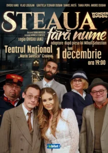 Wonder Theatre are plăcerea să vă invite de Ziua Nationala, 1 decembrie, la premiera craioveana a spectacolului “Steaua fără nume”, capodopera lui Mihail Sebastian, adaptată de către Ovidiu Ianu, într-o punere in scena eveniment în care veți putea admira și aplauda o distribuție ce vă va încânta sufletul: Grațiela Teohari Duban, Vlad Logigan, Tania Popa, Daniel Nuță/Bogdan Farcaș, Andrei Duban și Ovidiu Ianu.